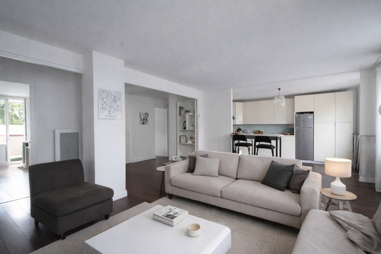 -REF 52EDV- Entre le cours Balguerie et les quais des Chartrons, appartement T4 traversant dans une résidence, il se compose d’un grand séjour avec cuisine équipée ouverte. Un salle de bains, un WC ainsi que trois chambres avec rangements donnant sur les jardins de la copropriété. L’appartement se trouve a 200m des quais et à 5 minutes à pieds du tram ligne B.